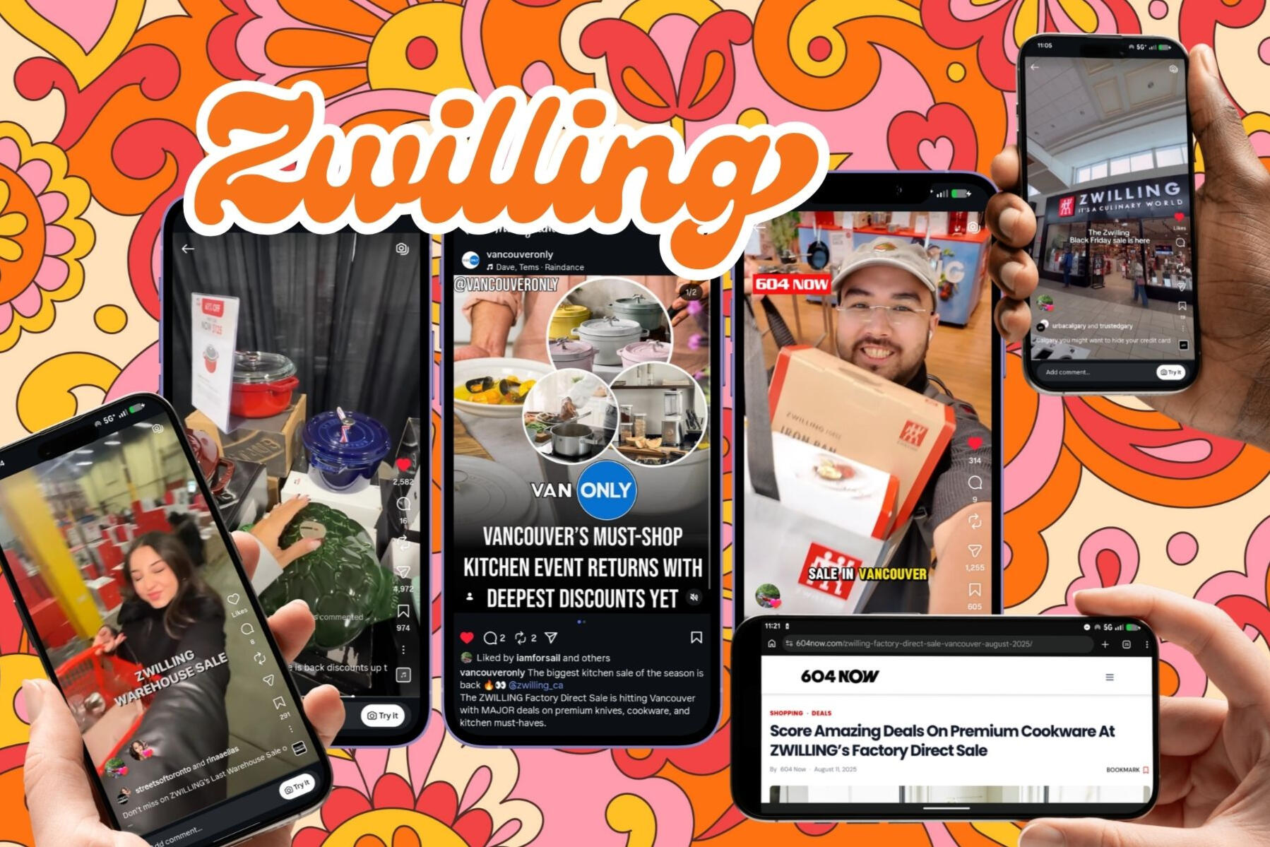 Since the end of 2022, I've partnered with Zwilling for all of their Factory Direct and Warehouse Sales across Canada.With careful planning and executing on all different types of creative tactics, I've been able to generate millions of impressions and interactions for Zwilling. On average, each Reel sold generates 100,000+ views.Total, I've generated just upwards of 6,000,000 impressions for Zwilling since the end of 2024.